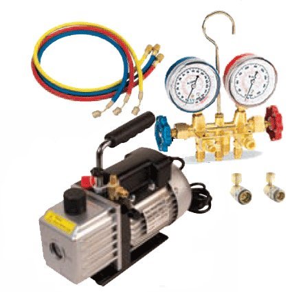 I highly recommendOne FJC A/C Vacuum Pump Kit w/ R134a Manifold Gauge Set